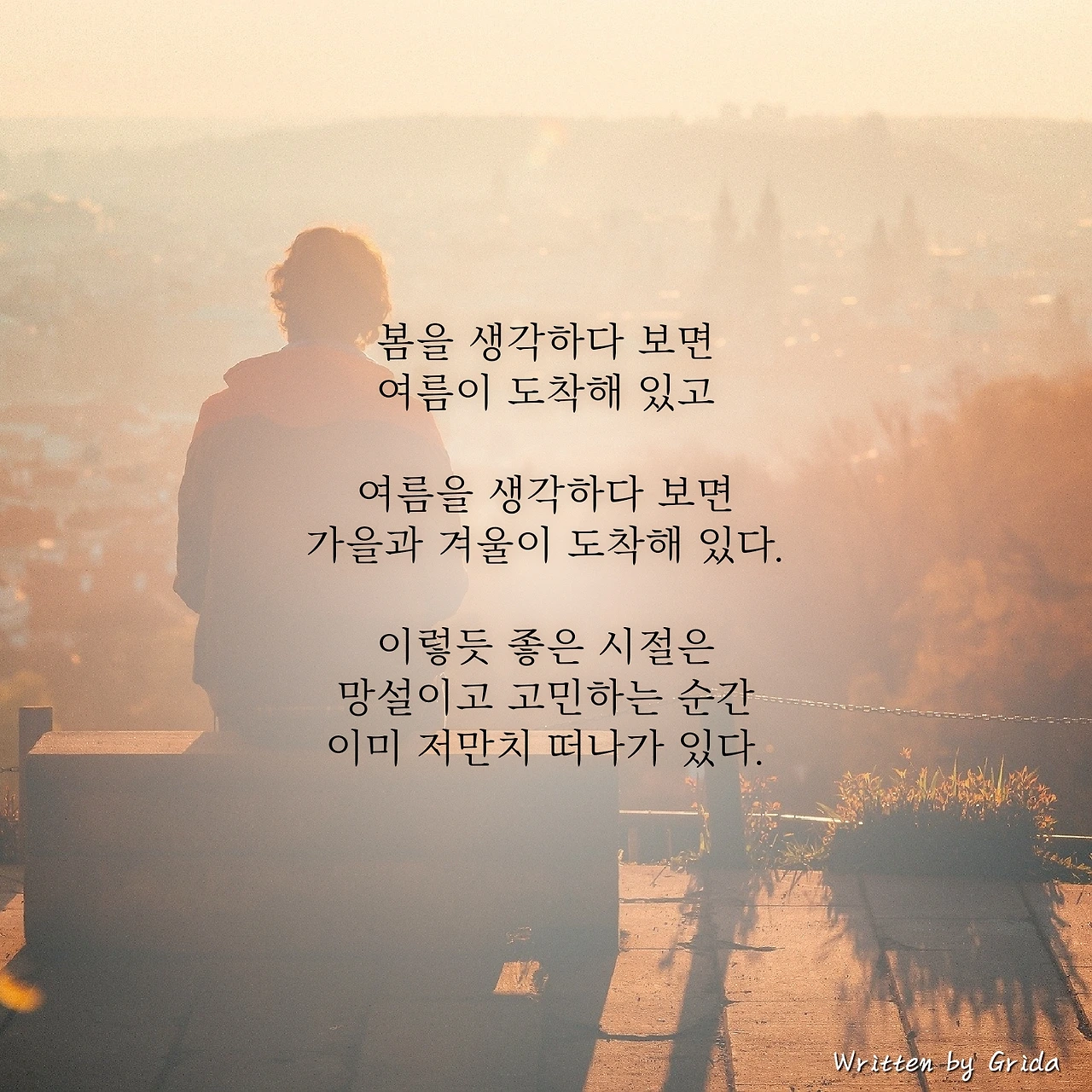좋았던 시절은 이렇듯 제대로 누리지 않고 계속 망설이고 고민하면 어느샌가 저만치 떠나간다.