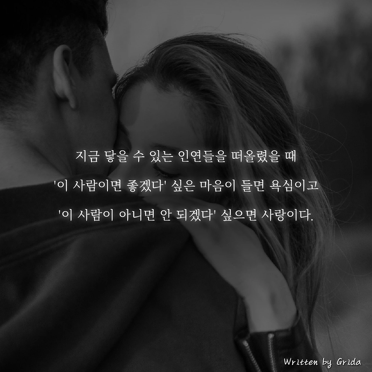 내가 닿을 수 있는 인연들을 떠올렸을 때 '이 사람이면 좋겠다' 싶은 마음이 들면 그건 욕심이고, '이 사람이 아니면 안 되겠다' 싶으면 그건 사랑이라고.