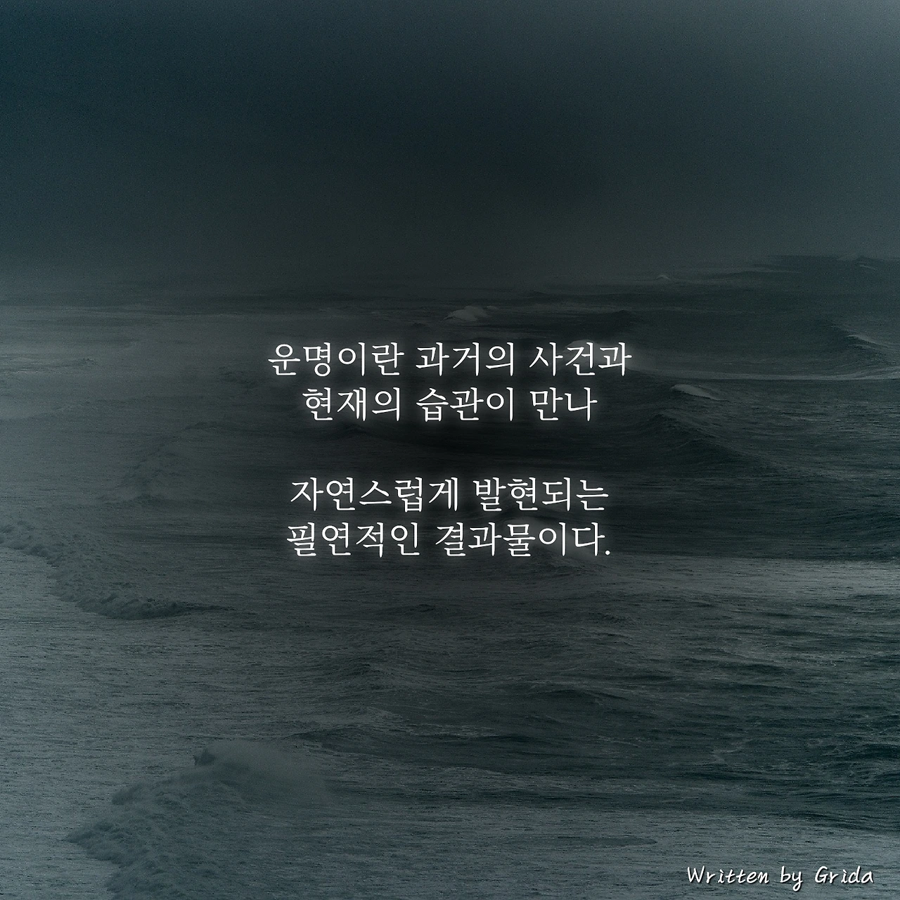 운명이라는 단어를 믿는 사람도 있고 믿지 않는 사람도 있겠지만 내가 생각하는 '운명'이란 과거에 내가 쌓아온 사건들과 현재의 습관들이 더해져서 자연스럽게 발현되는, 필연적인 결과물이라고 생각해.