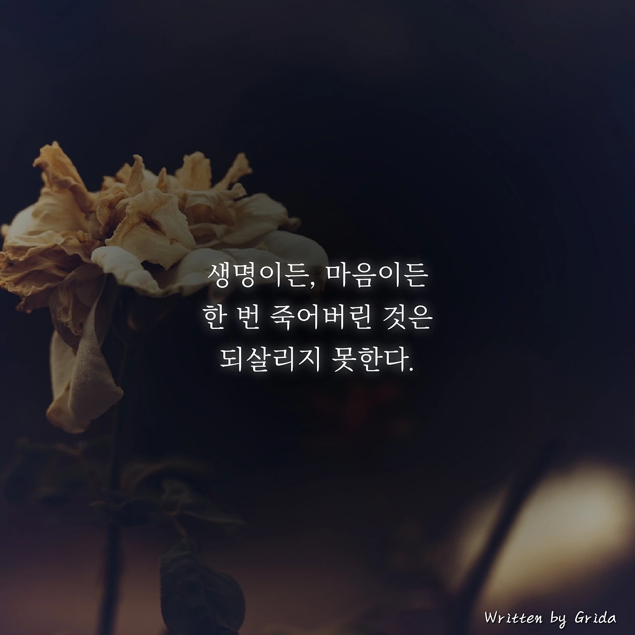 이미 차갑게 식어버린 잿더미에 불쏘시개를 가져다 대어본들 꺼진 불꽃이 다시 살아나지 않는 것처럼, 활기차던 생명이든, 사랑을 담았던 마음이든 한번 죽어버린 것은 되살리지 못한다.