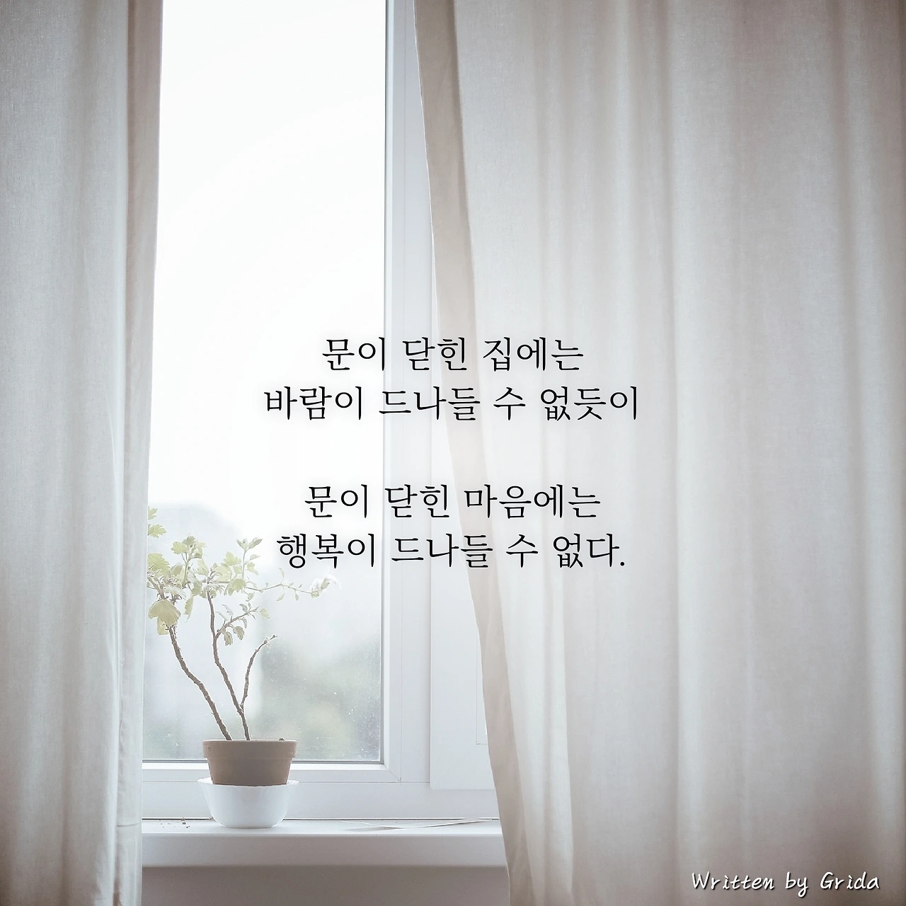 날이 따뜻해서 창문을 조금 열어둔다. 그러자 열린 문으로 바람이 새어든다. 낯선 것을 받아들이기 위한 작은 행동이 이 방안을 상쾌함으로 가득 채웠다.
