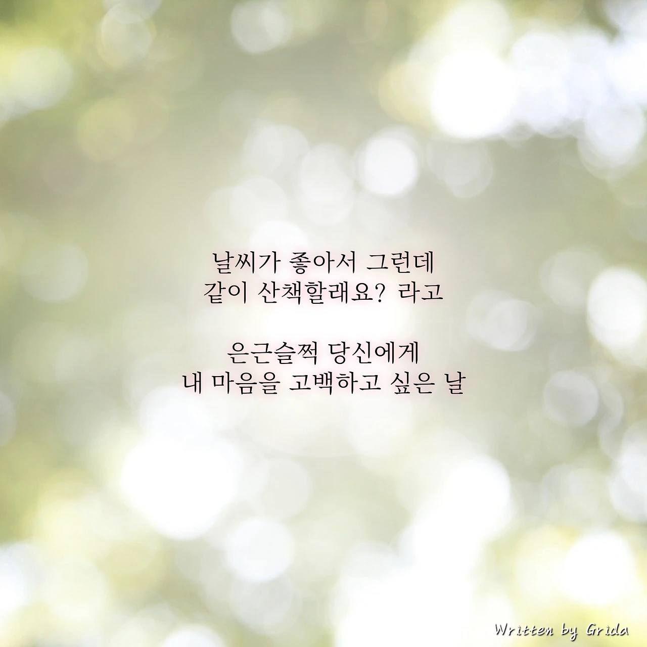 오늘 같은 날은 왠지 모르게 "날씨가 좋은데 같이 산책할래요?"라고, 은근슬쩍 당신에게 내 마음을 고백하고 싶은 날이다.
