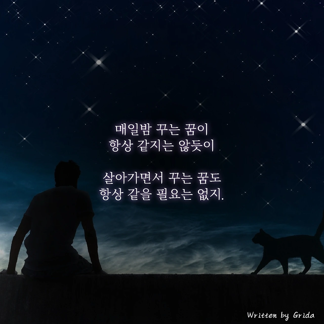 자신이 바랐던 꿈을 이룰 수 없을 때. 젊은 시절 꾸었던 꿈을 수정하게 되거나 소박한 것으로 바꿀 수밖에 없을 때 우리는 가끔 부끄러워하곤 해. 하지만 결국 그런 꿈(Dream)은 매일 밤 꾸는 꿈(Dream)과 단어가 같다는 것을 기억해야 해. 밤에 꾸는 꿈처럼 일상에서의 꿈도, 원한다면 언제든지 자유롭게 상상하고 수정할 수 있다는 것을 말이야.