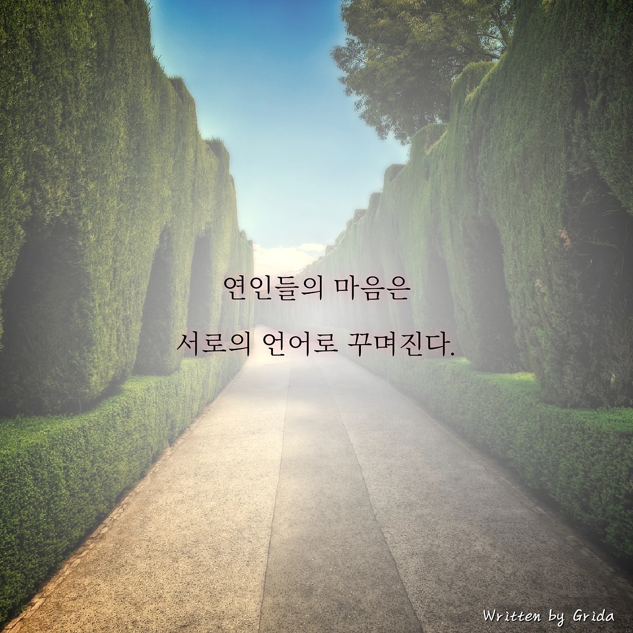 사랑을 통해 이어진 연인들의 마음은, 그 순간부터 서로의 언어로 꾸며지게 된다. 이기적이고 나쁜 말을 상대방에게 건넨다면 서로의 마음속은 가시넝쿨과 어둠으로 채워질 것이고, 예쁜 말과 배려를 건넨다면 그 공간은 햇살과 꽃으로 가득 찰 것이다.