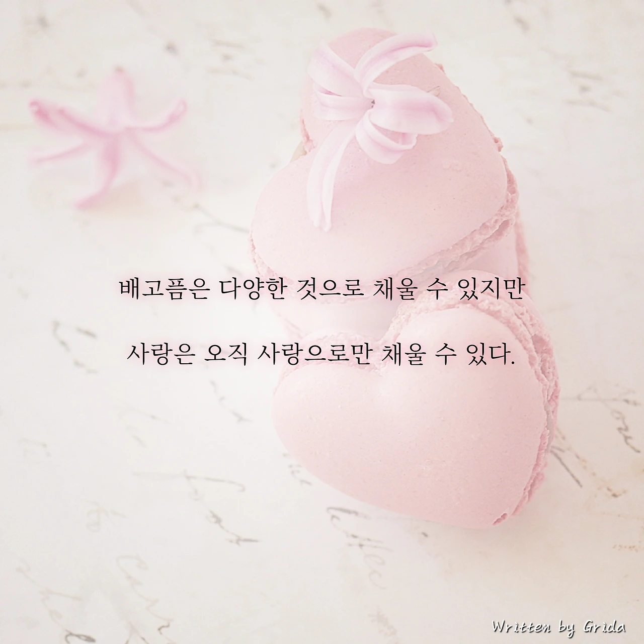 우리 주변에는 다양한 욕구들이 존재하고, 각각의 욕구를 충족시키기 위한 요소 또한 다양하게 존재한다. 그러나 사랑에 대한 욕구는 오로지 사랑으로만 채울 수 있음을 느낀다. 가끔 우리는 사랑하고, 사랑받으려는 욕구를 채울 수 없을 때 다른 무엇인가로 채워보려 시도를 하지만 그럴 때마다 마음은 이 욕구가 다른 것으로는 온전히 채워지지 않는다는 것을 깨닫고 만다.