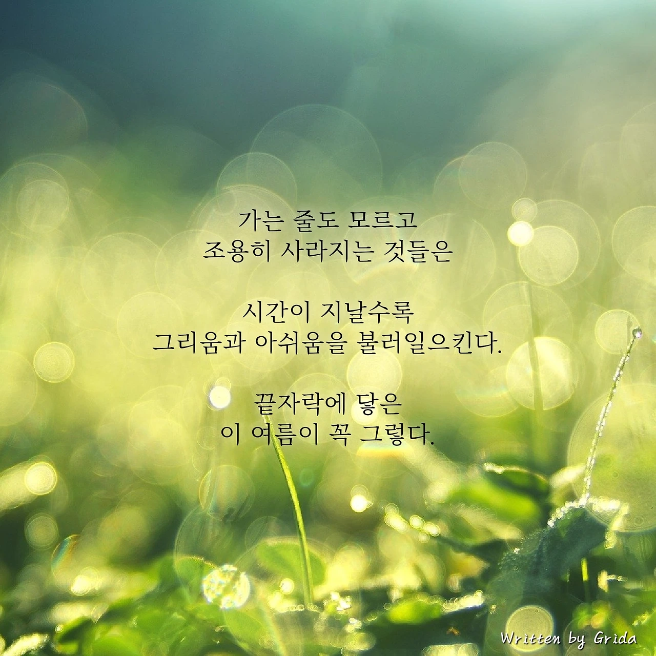 봄의 자리를 가로채고 온 여름이었기에 더위가 좀 더 길 줄 알았다. 달력을 보자 그런 기대가 무색하게 가을은 코앞으로 다가와 있었다. 오늘 아침 8시의 햇살은 한 달 전의 그것처럼 여전히 뜨거웠다. 여름은 자신이 떠날 것이라는 티를 내지 않고 마지막 순간까지 머무르다가 사라지고 싶은가 보다. 그러고 보면 가는 줄도 모르고 조용히 사라지는 것들은 시간이 지날수록 그리움과 아쉬움을 불러일으키는 것 같다. 그런 생각이 문득 들어서인지, 나는 오랜 시간 동안 오늘의 햇살을 붙잡고 있다. 오늘 내가 깨닫지 못하는 것은 무엇일까? 시간이 흐르면 내가 무엇을 후회하게 될지 지금으로서는 알 수 없다.
