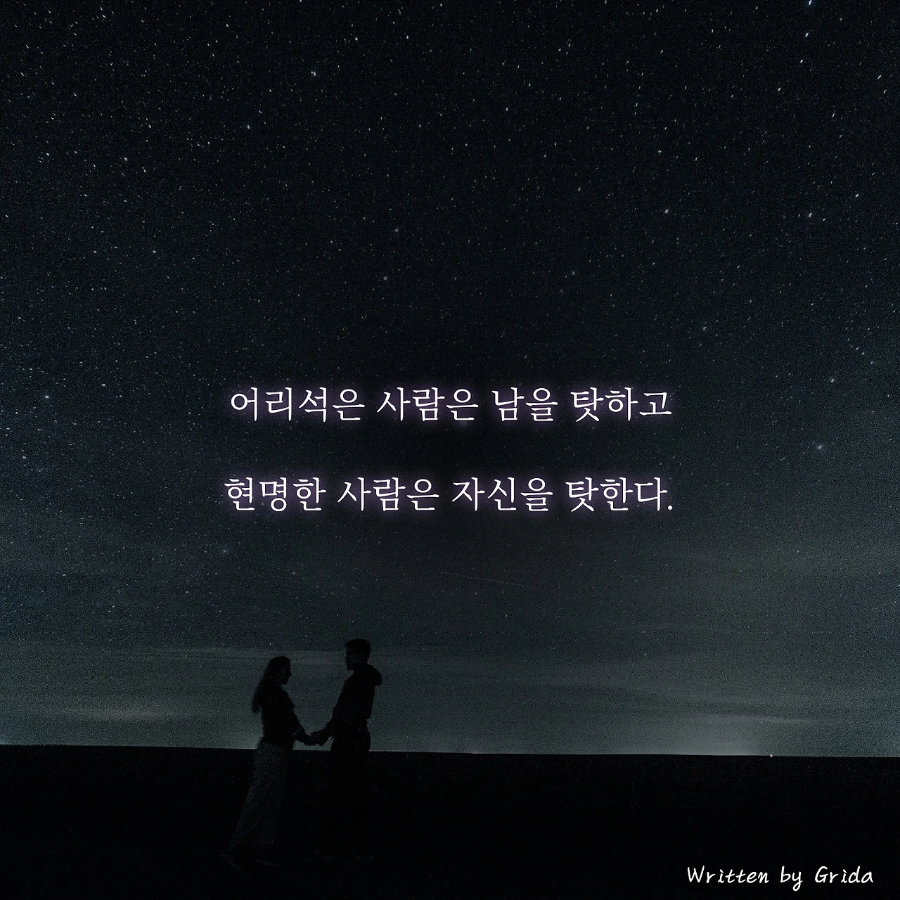 "현명한 사람은 자신을 탓하고, 어리석은 사람은 남을 탓한다."