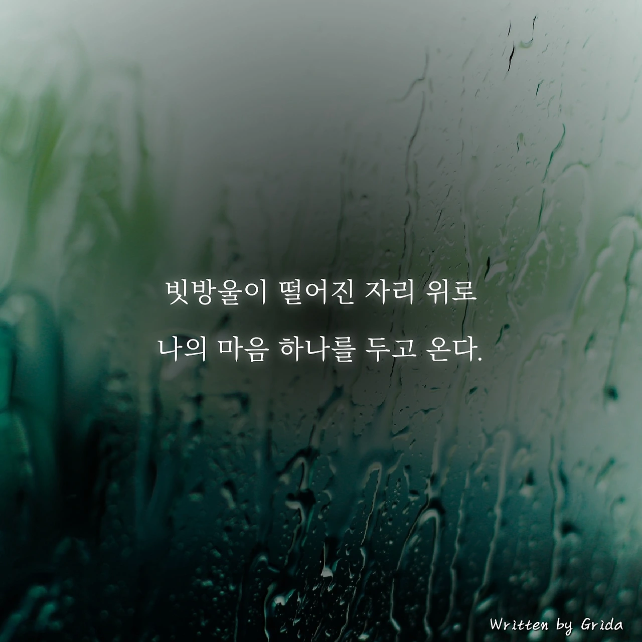 여하튼 이런 생각에 오래 잠겨있어봐야 내 숨만 턱하고 막힐 뿐이니, 창문에 쌓인 먼지를 씻어내듯 불필요한 생각들을 내 마음속에서 씻어내기 위해 빗방울이 떨어진 자리 위로 나의 마음 하나를 두고 오기로 한다.