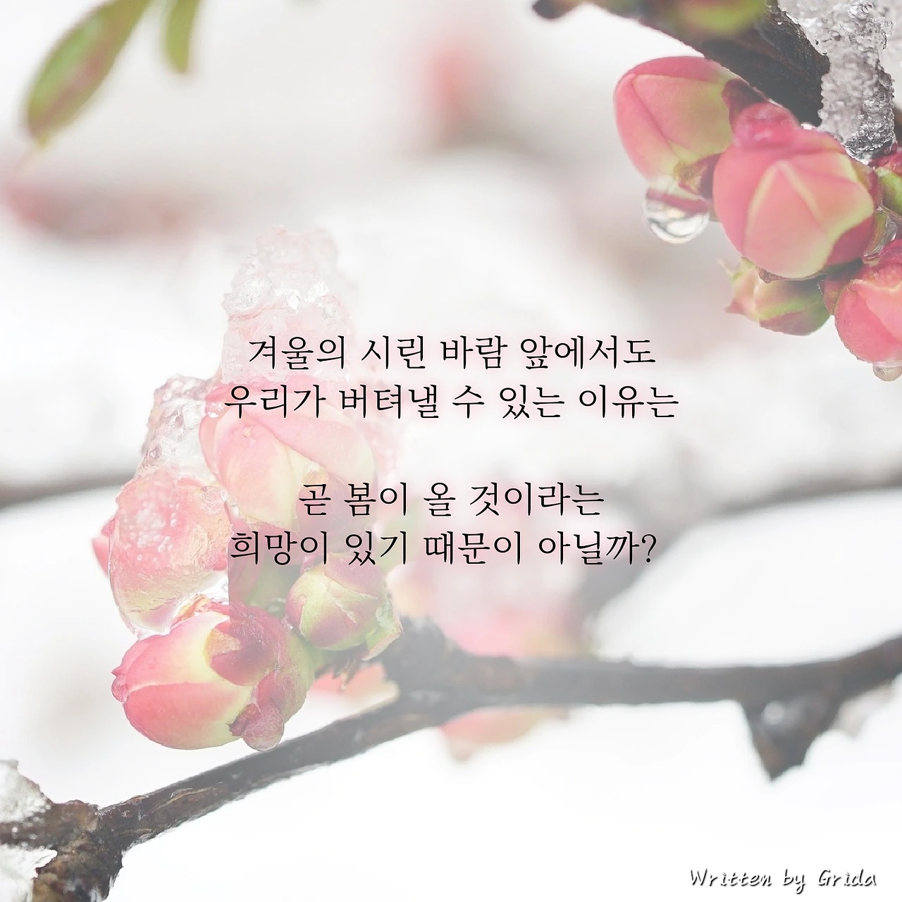시린 겨울도 결국은 지나갈 테니까. 이 시간이 지나면 분명 봄이 찾아올 테니까.