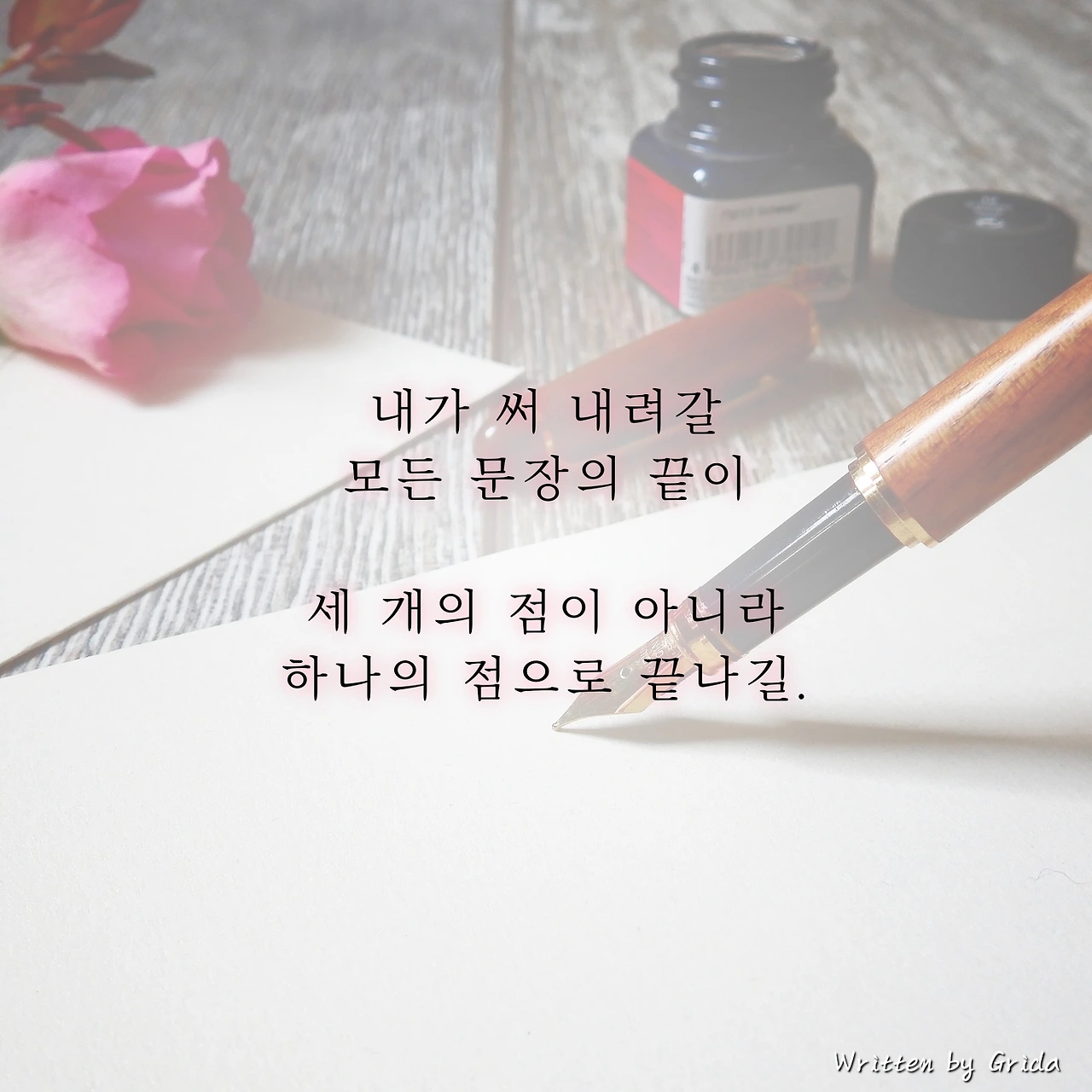 그래서 나는 그 문장들이 부끄러워 이후에 내가 써 내려갈 문장에는 하나의 점만 남기고 싶다는 고백을 한다. 간략하고 완성도 있게. 때때로 누군가로 인해 문장이 길어지더라도 그 마지막에는 언제나 작은 점 하나만을 찍을 수 있도록. 생각해 보니 그런 바람을 이루려면 우선 오늘의 문장부터 잘 마무리해야겠다는 생각이 든다. 아쉬움이 남지 않도록. 훗날 오늘을 후회하지 않도록.