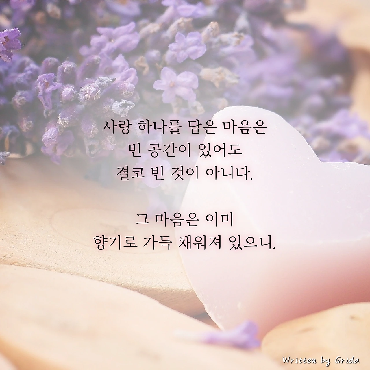 좋은 감정들로 마음을 채운 사람은 겉으로 보기에 조금은 소박해 보이기도 한다. 그러나 그 내면은 물질로써 공허함을 채운 사람보다 오히려 더 촘촘하고 충만한 무언가로 채워져 있음을 느낄 수 있다. 그리고 우리는 이미 그게 무엇인지 알고 있다. 그 사람의 마음에는 이미 좋은 향기들이 가득 들어차 있다는 사실을.