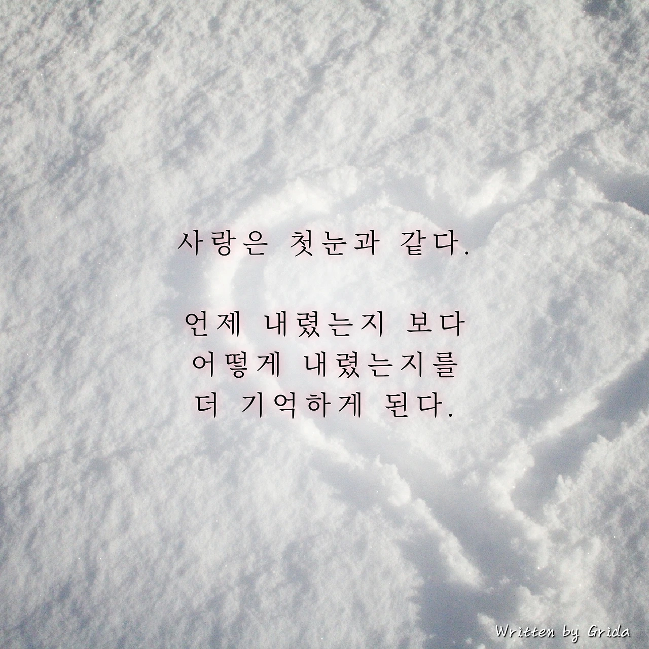 눈이 내린다. 2월은 이미 저물어갈 기미를 보이는데, 이렇게 또 눈이 내린다. 누군가에게는 이것이 첫눈이 될 수 있고, 또 누군가에게는 올해 12월에 내리는 눈이 첫눈일 수 있다. 하지만 사실 이런 날짜는 그리 상관이 없다. 언제 내렸는지 보다 어떻게 내렸는지를 더 자세히 기억하게 될 테니까. 마치 우리의 마음에 수북이 쌓인, 사랑이라는 단어처럼.