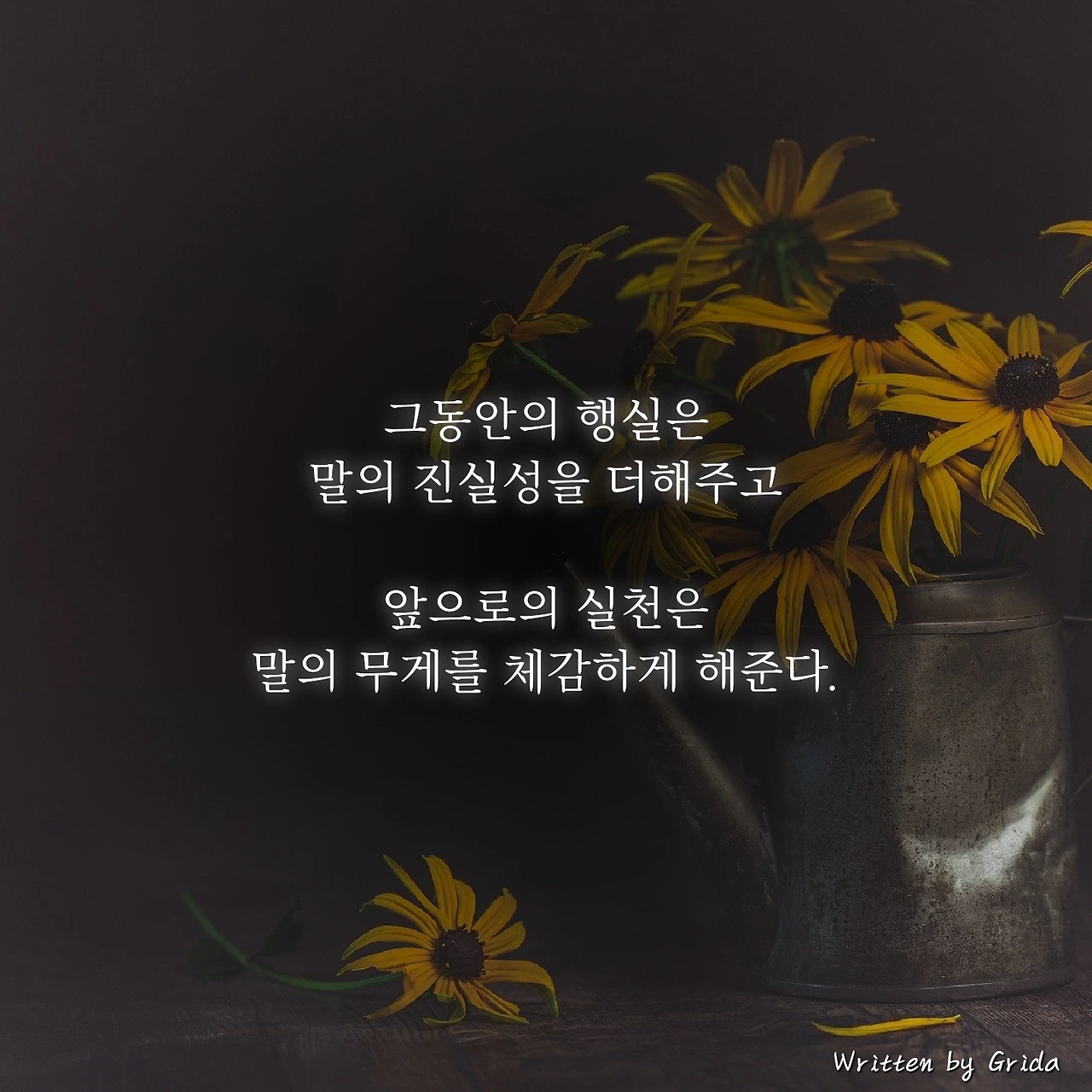 아무 말이나 쉽게 꺼내지 않는 것. 그리고 한 번 꺼낸 말이라면 힘써서 지키려 하는 것. 그런 행동들이 바로 도화지 같은 나의 삶을 짙게 색칠해주는 물감이자 무게를 더해주는 원천이 아닐까 싶다.