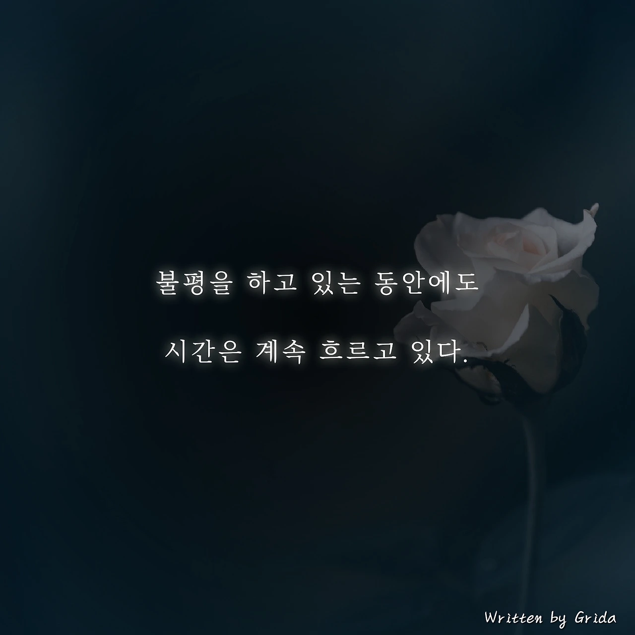 환경을 탓하고, 남을 탓하고, 사람을 탓하는 순간에도 시간은 계속 흐르고 있다. 단 한 번뿐인 시간, 한 번뿐인 인생을 무의미한 투덜거림으로 채우는 것은 너무나도 아깝다. 그래서 나는 다짐한다. 나의 인생은 유려한 변명 따위로 과거를 덮으려 하지 말자고. 지금의 어려움이 훗날 자랑스러운 성공담이 된다는 것을 믿고 오늘 하루도 긍정적으로 살아가자고.