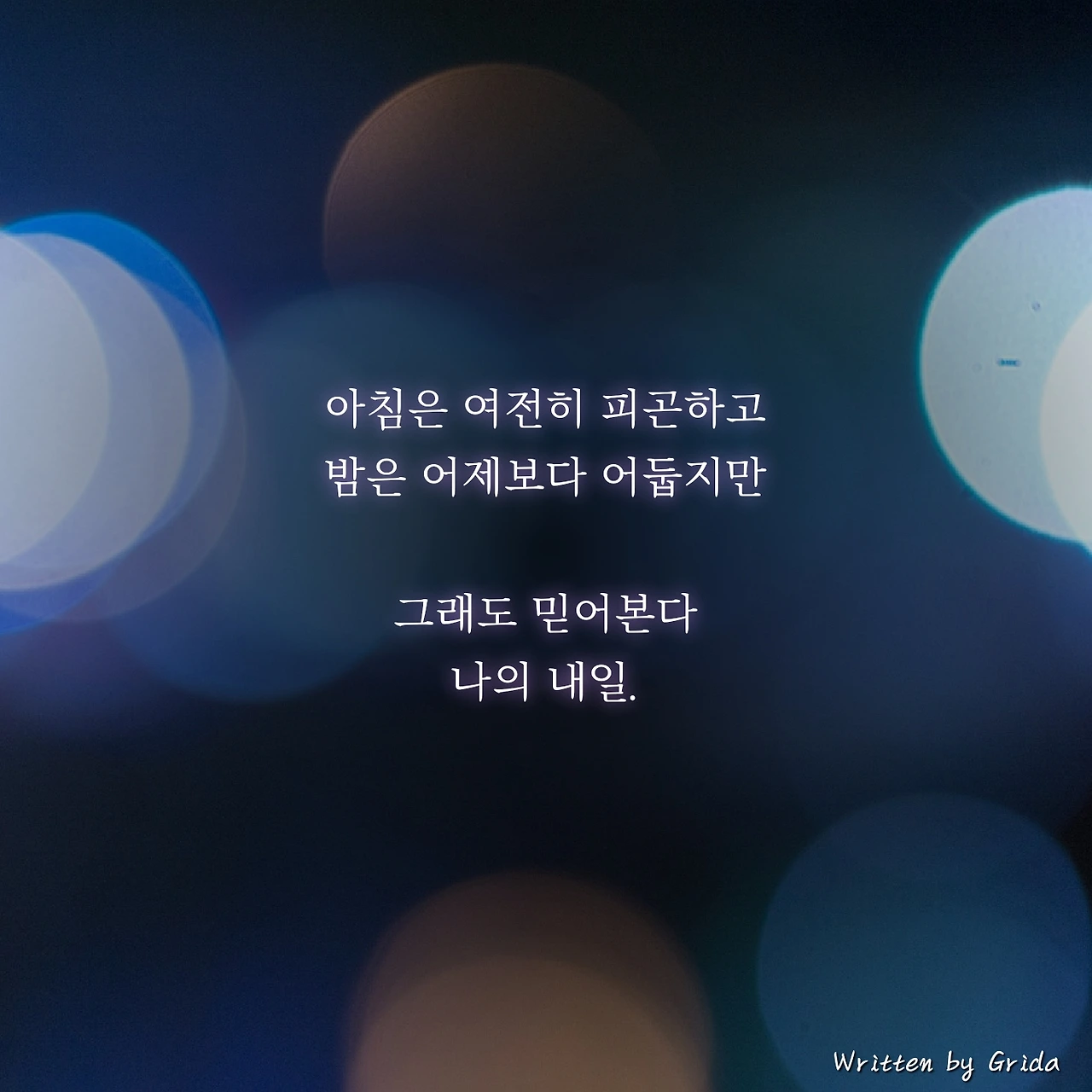 누구도 이 길의 끝을 알려 줄 수 없지만. 홀로 걸어야만 하는 길은 여느 때처럼 고독할 테지만. 그래도 믿어본다, 나의 내일.
