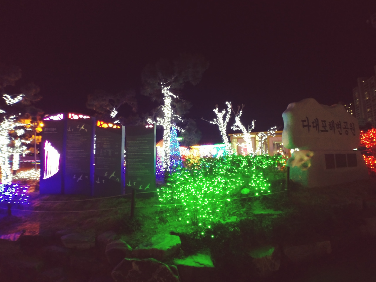 다대포에 도착하면 봄에서 가을 기간 동안에는 보통 다대포의 명물인 '꿈의 낙조 분수'가 방문객을 반긴다. 하지만 겨울 기간에는 분수의 운영이 멈추고 낙조분수가 있는 곳과 그 주변에 '빛공원'이 조성된다. 겨울이 되면 사진처럼 겨울에 어울리는 각종 조형물과 조명들이 풍경을 수놓는데, 나름의 사진 스폿으로 인기가 많다.