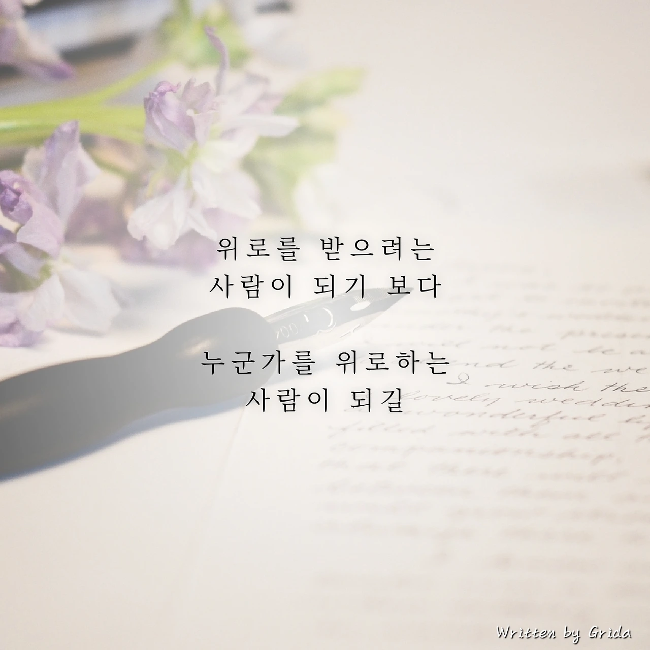 가끔은 나를 돌보아야 하는 때가 찾아오겠지만 그렇지 않은 순간에는 항상, 위로를 받으려 하기 보다 누군가를 먼저 위로하는 사람이 되자.