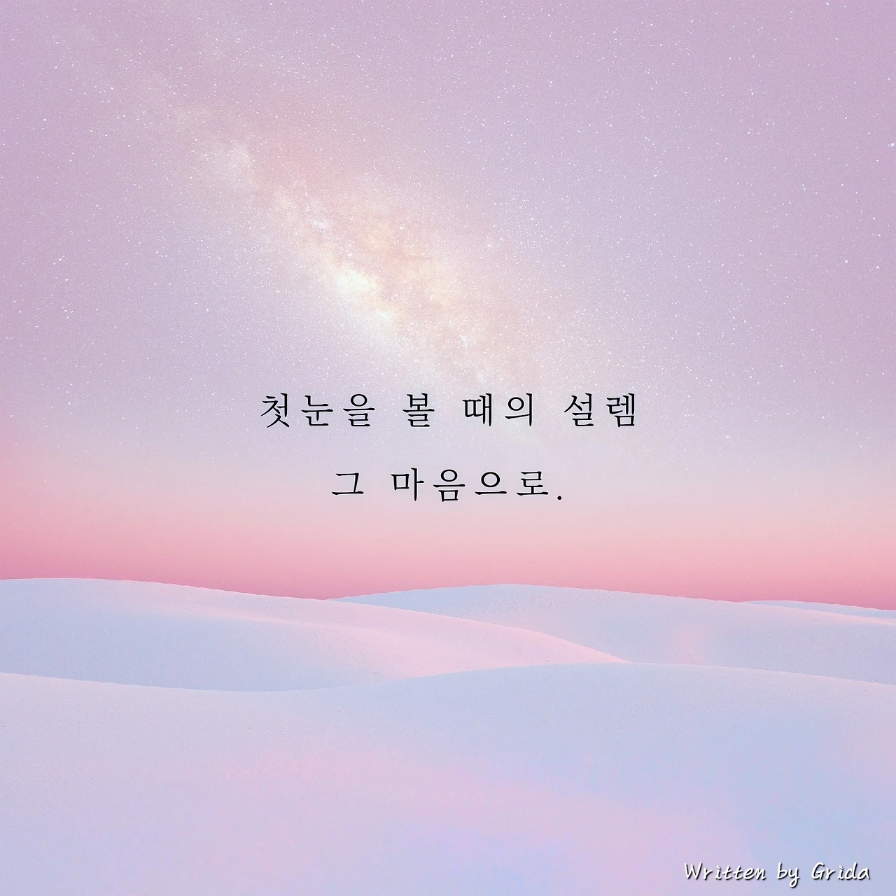 아직 첫눈이 오지는 않았지만, 눈이 내린다는 상상만으로도 마음은 벌써부터 하얀 눈밭 위에 발자국을 남기고 있다. 첫눈을 볼 때의 설렘, 그 마음으로 매일을 살아간다면 어떨까? 그 떨림으로 누군가를 맞이한다면 어떨까? 그렇게 된다면 미움도 질투도 눈처럼 덮여, 시선이 닿는 모든 것이 소중하다고 스스로에게 말하게 될지도 모르겠다.