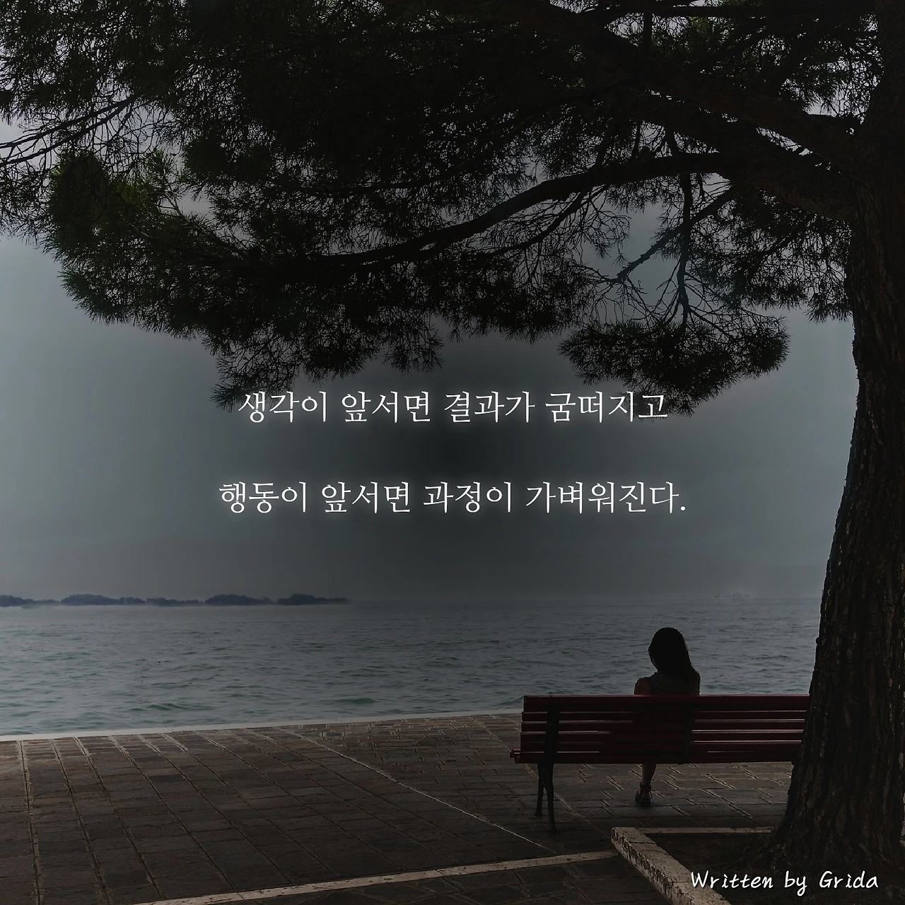사람들은 인생에 주어진 목적들을 실행할 때 저마다의 차이를 보인다. 변수를 줄이기 위해서 생각을 길게 하느냐, 아니면 빠른 결과를 얻기 위해서 행동을 먼저 하느냐. 나는 생각이 긴 사람이긴 하지만, 항상 생각과 결과 이 두 가지는 나란히 걸어야 한다는 생각을 한다. 생각이 앞서면 순간의 기회를 놓치는 탓에 결과가 굼떠지고, 행동이 앞서면 다음을 준비하지 못한 탓에 과정이 가벼워지는 것이라고.