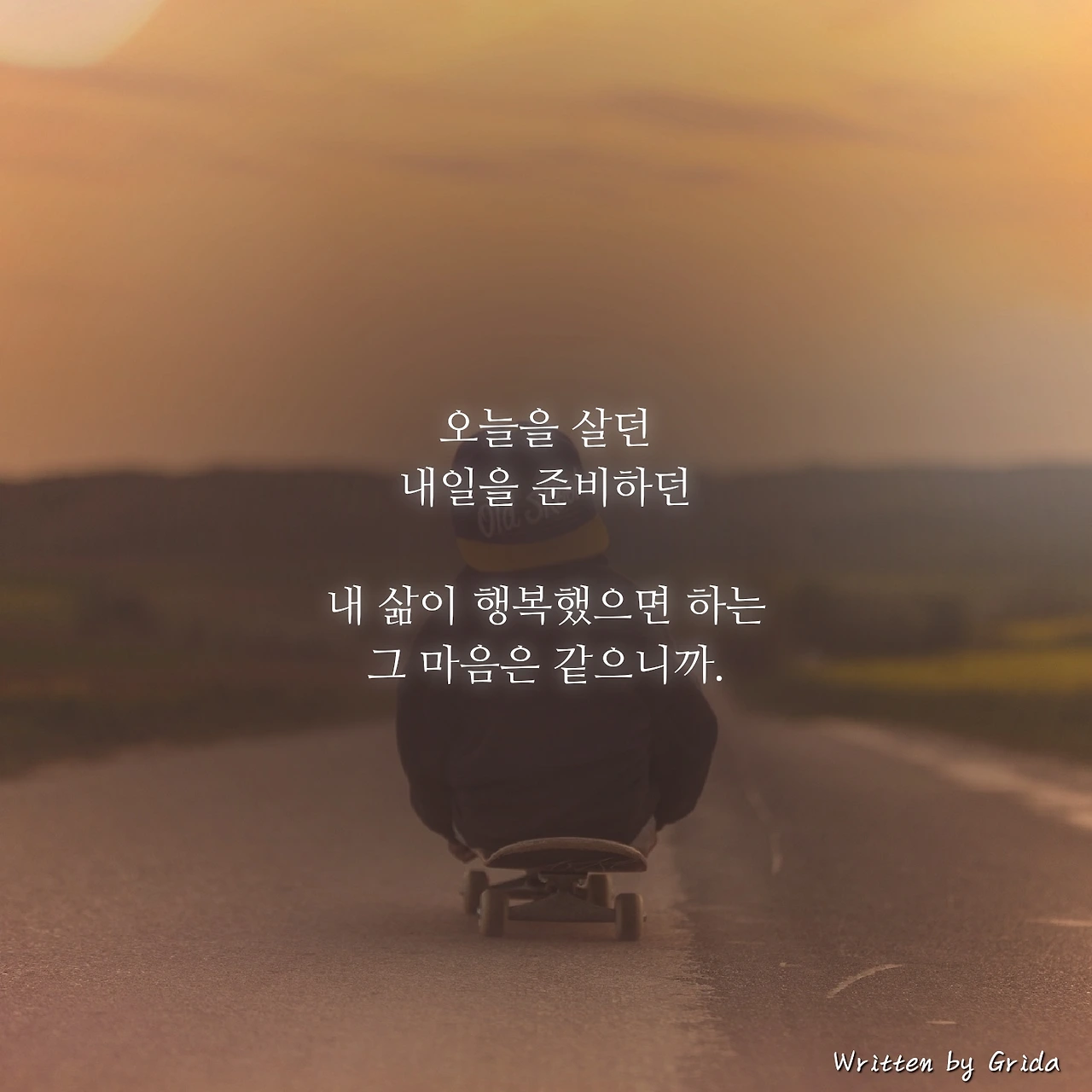 그래서 나는 생각한다. 행복이란 서로의 삶을 존중하고, 내 삶에 집중하게 되면 자연스레 따라오는 것이라고.