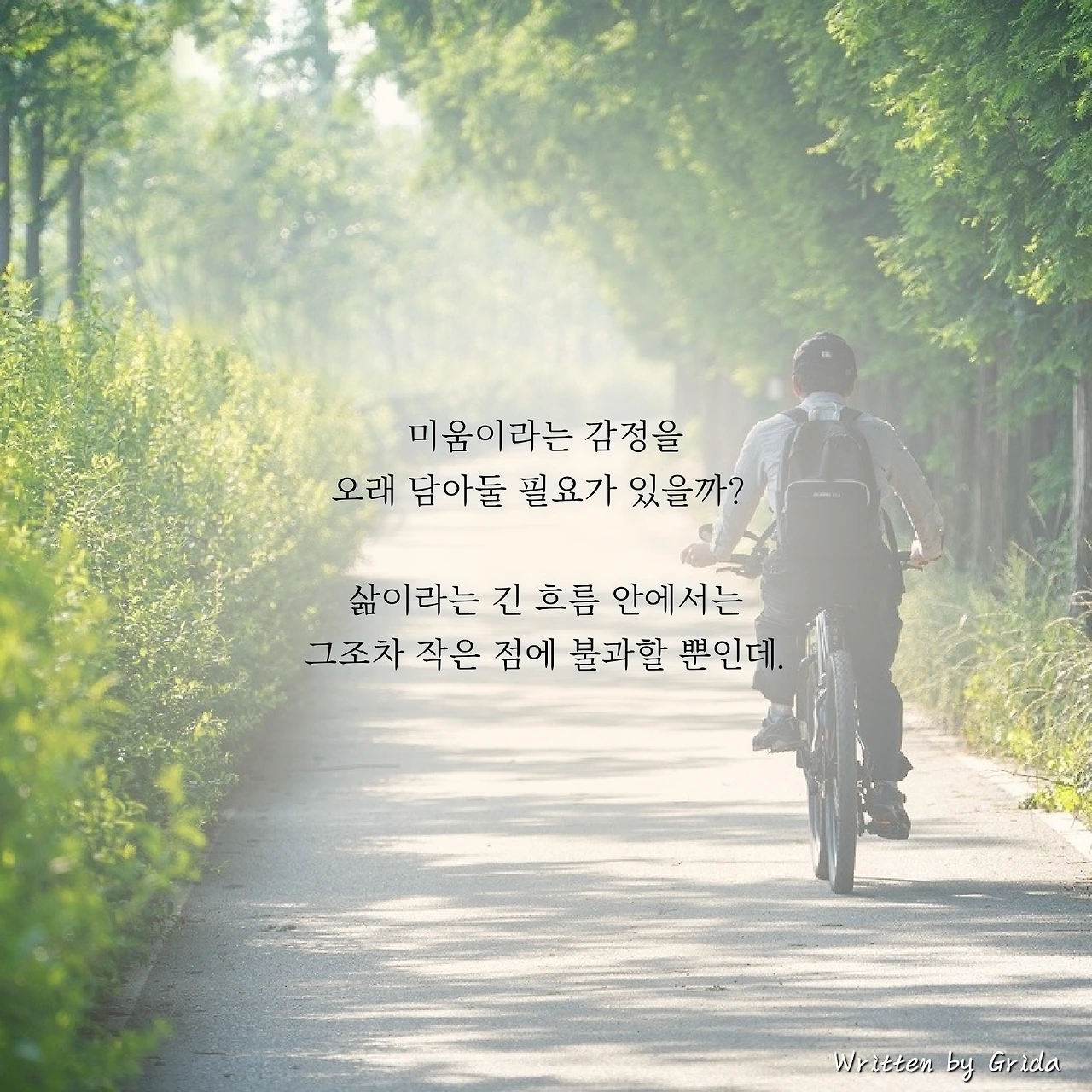 미움이라는 감정은 다른 어느 감정보다 짙다. 그러나 그 짙음이 내 삶 전체를 물들이게 두어서는 안 된다.