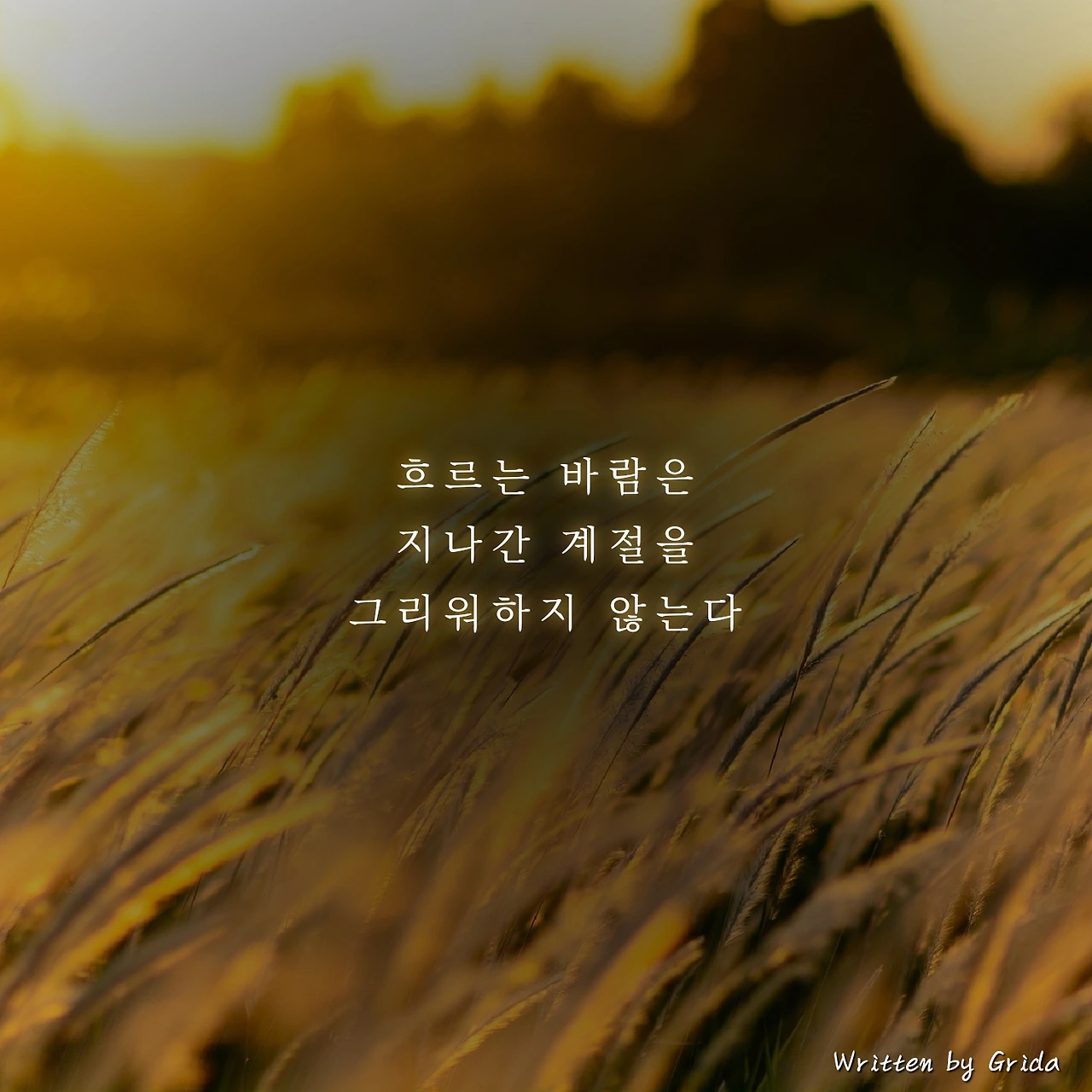 흐르는 바람은 지나간 계절을 그리워하지 않는다. 왜냐하면 바람은 이미 지나간 것들보다 앞으로 마주하게 될 것들이, 삶에 있어서 더 중요하다는 것을 알고 있기 때문이다.