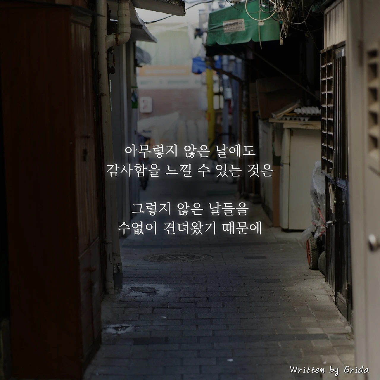 하루 종일 그렇게 화낼 일도, 웃을 일도 없이 무던히 지나갔던 하루. 눈을 깜빡이면 어느새 잊히게 될 수도 있는 쉬운 하루에 불과했지만, 나는 그런 하루에 문득 감사해졌다.