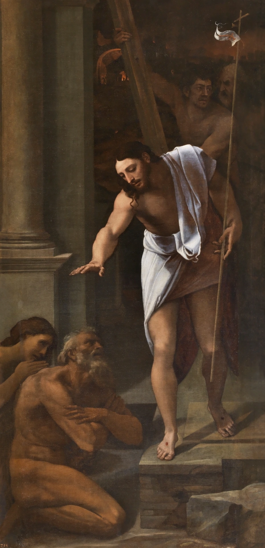 이 그림은 흰 가운을 입고 승리의 깃발을 쓰고 있는 그리스도가 왼편 아래에 있는 아담과 이브를 향해 몸을 숙여 “림보(기독교를 믿을 기회가 없었던 의로운 사람들이 머문다는 선조 림보(Limbus Patrum)라고 볼 수 있다. 세례받지 못한 아기들도 여기 있다. 고대 그리스와 로마의 철학자들과 영웅들 대부분이 여기에 있었다)”에서 하늘나라로 데려오기를 이야기는 하는 그림이다. 단테의 신곡에서 베아트리체의 이끎으로 “천국과 연옥과 지옥”의 과정을 다녀온 이야기 속에서 그려냈다. 특히 그리스도의 부활을 서술하는 니고데모의 글에 기록이 되어 있는 내용이다.