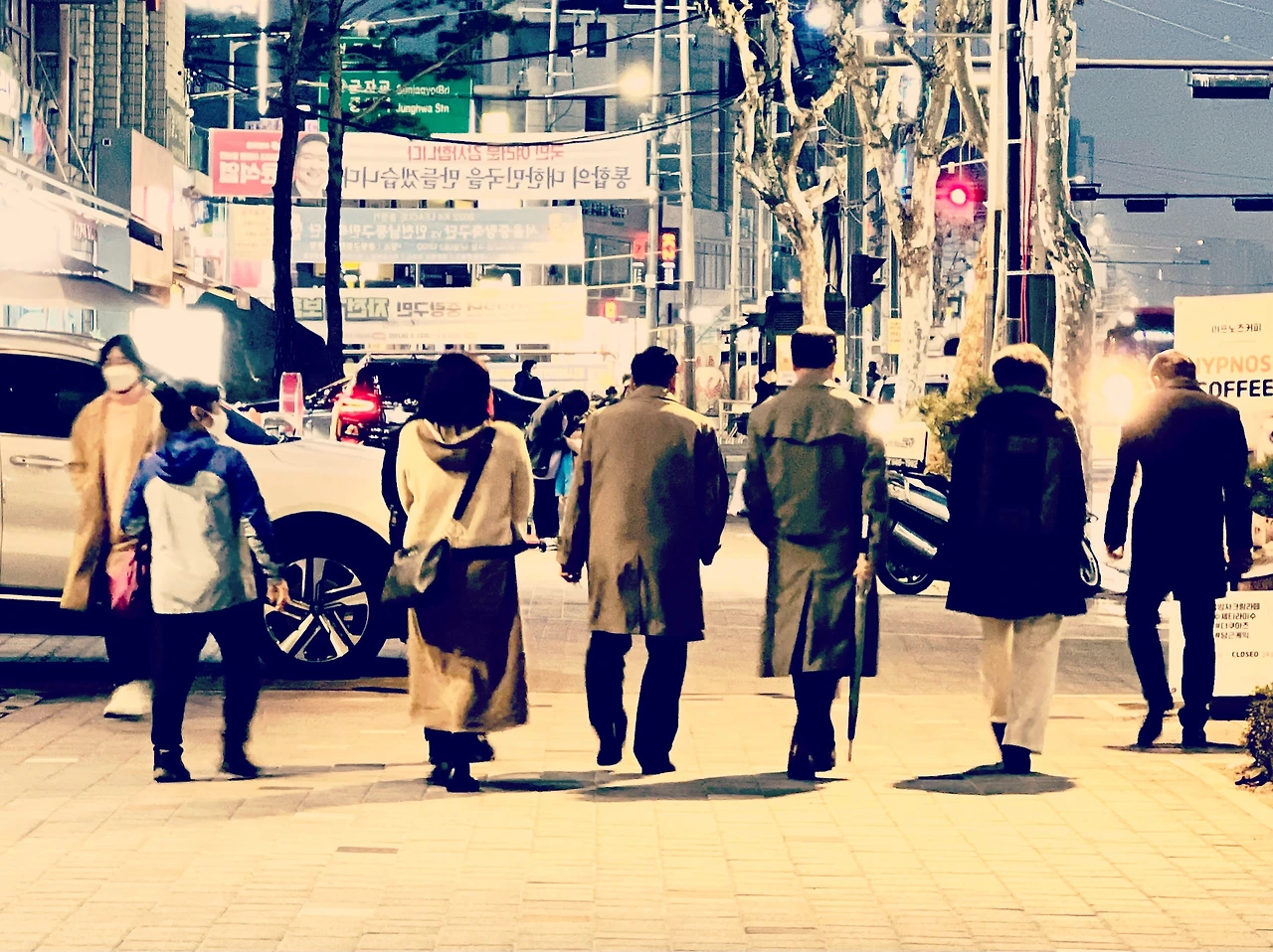 우산을 놓고 와서 다시 돌아갔다가 나오니 저리들 행복하게 걸어가신다