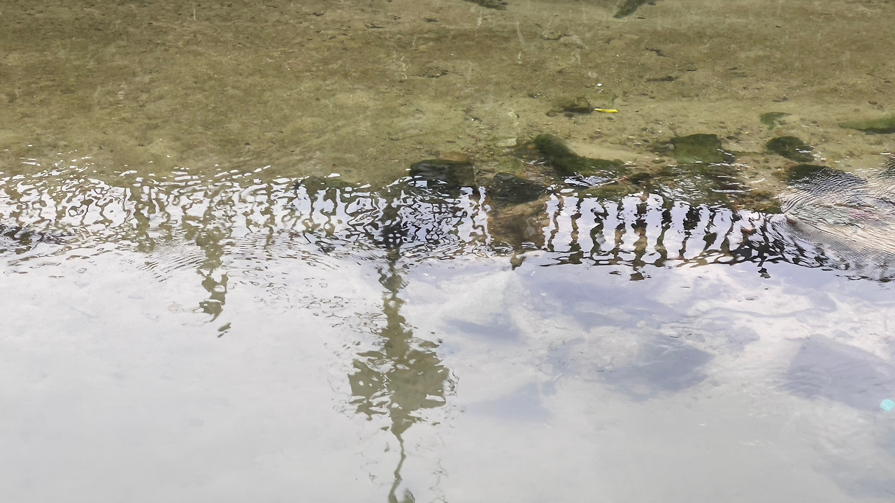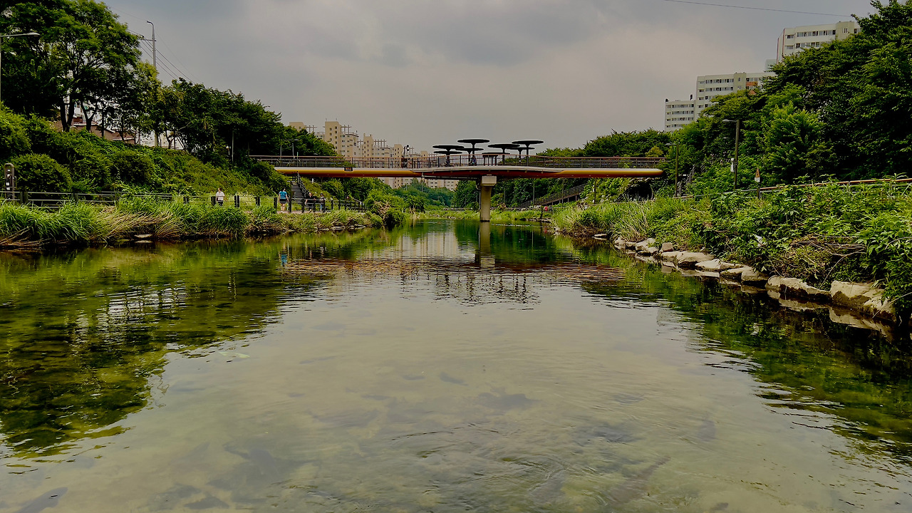 동네 꼬마가 들어가 수영하고