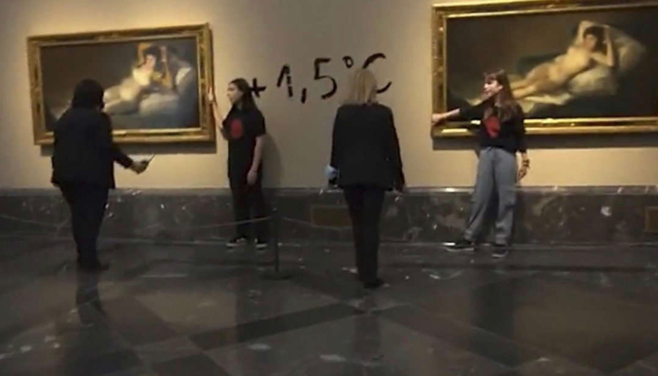 Dos activistas se pegan a los marcos de ‘Las majas’ de Goya en el Museo del Prado.