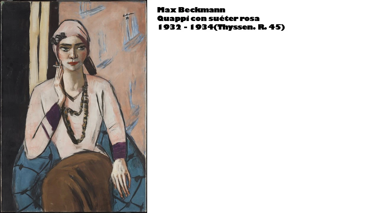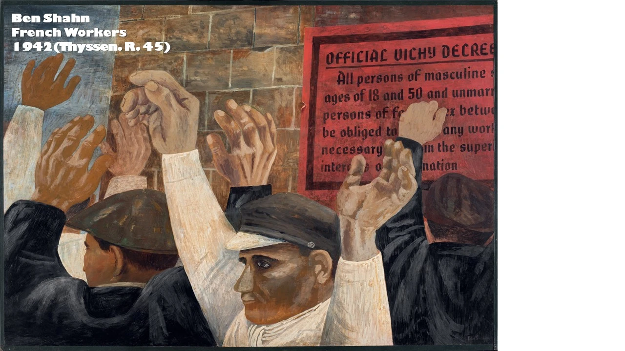 히틀러에 의해 퇴폐미술이라는 미명 하에 가슴 아픔을 당했던 막스 베크만(max beckmann)이 그려낸 그의 아내의 모습(Quappi con suéter rosa. 1932~1934. Thyssen Bornemisza. R.45)이나 프랑스 노동자들을 그리며 사회적 모순과 상황을 잘 표현한 벤 샨(ben shahn. French Workers. 1942. Thyssen Bornemisza. R.45)의 작품에서도 우리는 시대적 아픔과 그 속에서 화가가 그려내며 보여주고 싶은 세계를 만나게 된다.