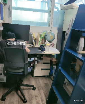 본인도 급한지, 웬일로 컴퓨터를 켜지도 않은 채 책상에서 숙제를 한다.
