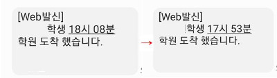 '티라노 씨 17시 53분 학원 도착했습니다.'라는 문자가 옵니다.
