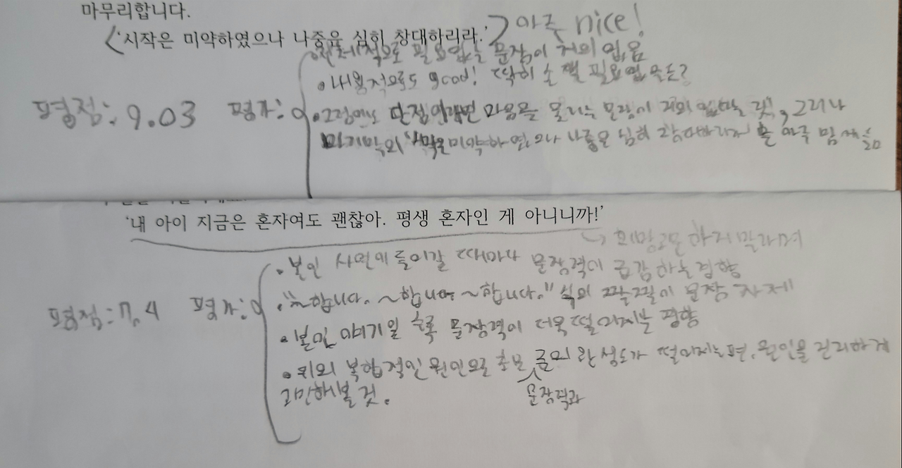 티라노는 활화산처럼 두렵다던 공부책상에 매일 앉아 하루에 하나씩 제 원고를 검토해 주었습니다. 모의고사에서도 국어는 풀지조차 않고 찍고 자는 아이입니다. 그런데 어릴 때 하던 한글학습지와 논술수업, 읽은 책들의 저력이 남아 있었습니다. 맞춤법이 헷갈려 물어보면 정확히 알려줍니다. 글 흐름이나 어색한 문장도 티라노가 의견을 준대로 고치면 나아지곤 했습니다.