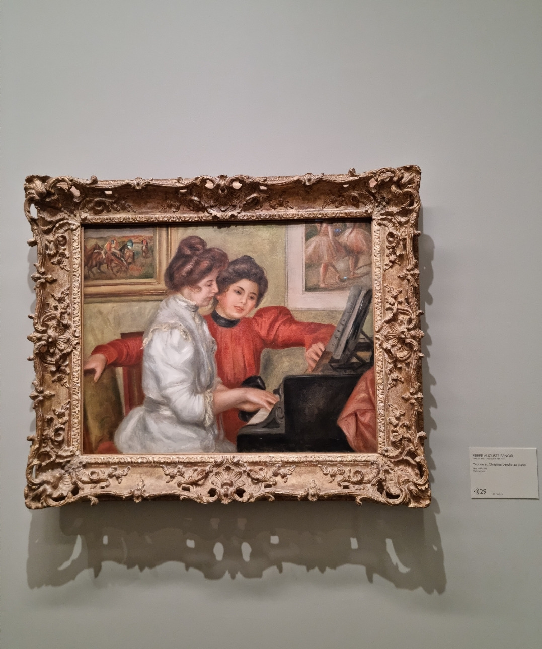 르누아르는 피아노를 치는 소녀들을 소재로 한 그림을 즐겨 그렸다. 피아노를 치는 소녀들 뒤편에 있는 두 그림은 드가의 작품이다. 말과 발레리나를 그린 드가의 작품은 오르세 미술관에서 볼 수 있었다.