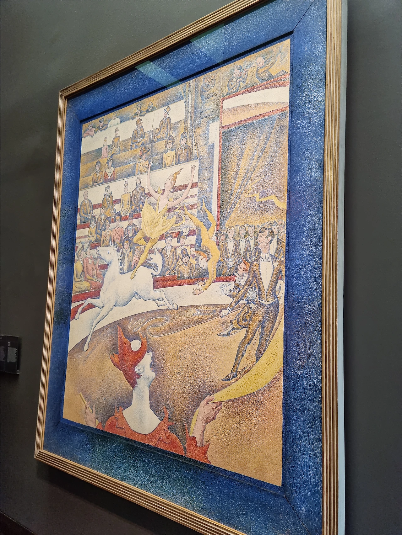 액자까지도 파란색 점으로 찍어낸 점이 인상 깊었다. 노란 색감의 그림과 파란색의 액자가 대조되어 인상적이었다.