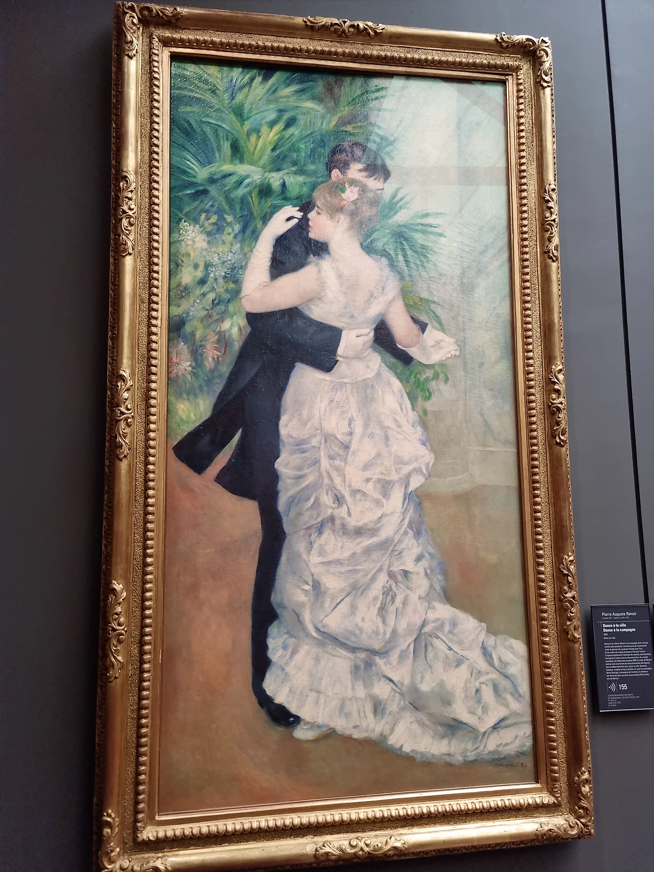 서로 짝을 이루는 이 작품은 나란히 붙어 있었다. 시골의 무도회에서 미소를 짓고 있는 여인은 후에 르누아르의 아내가 된 알린느 샤리고라고 한다. 조금 더 격식을 차린 도시의 무도회 그림과 소풍을 온 듯한 느낌이 나는 시골의 무도회 그림을 나란히 볼 수 있어서 좋았다.