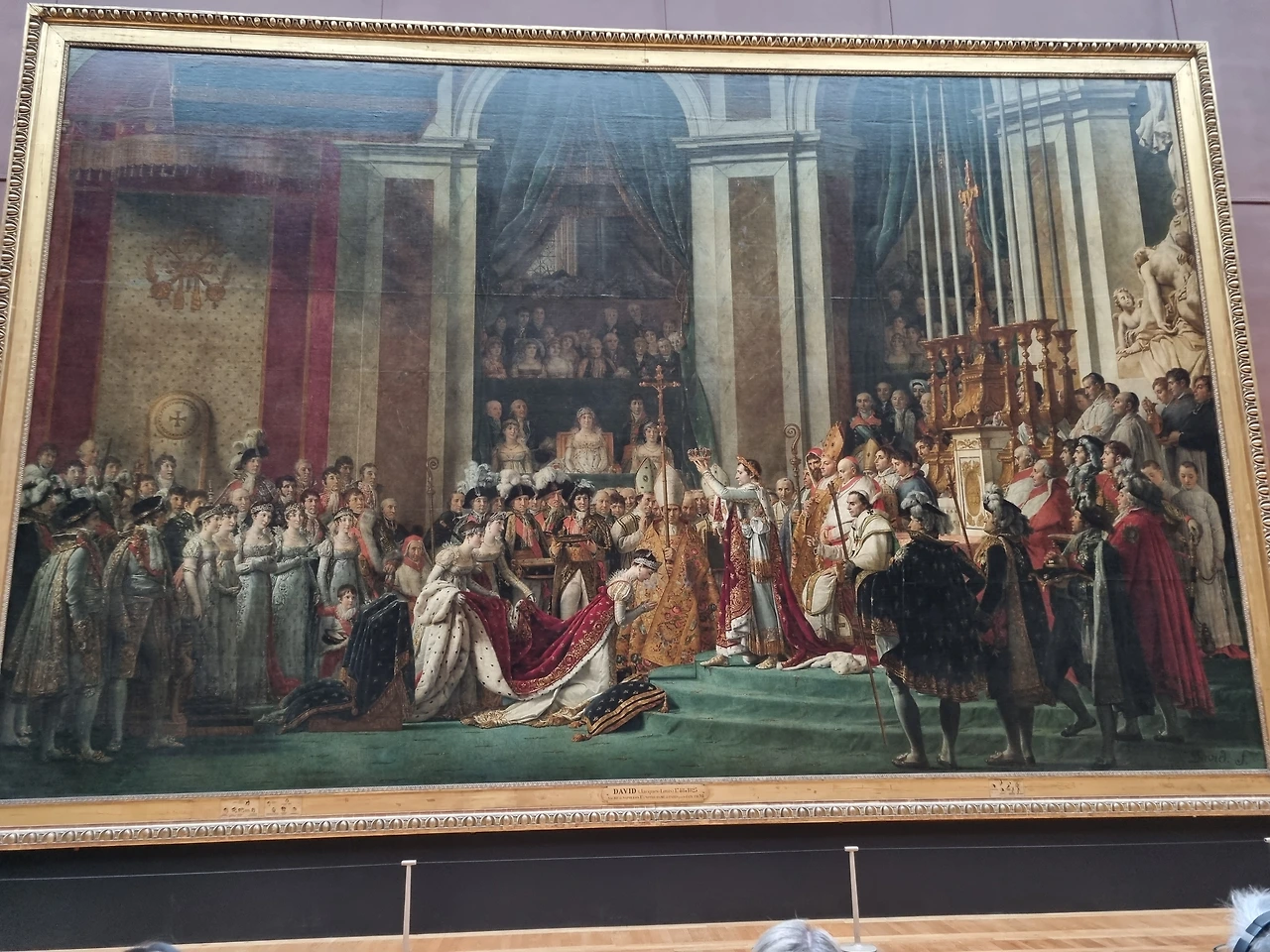 다비드는 나폴레옹의 전속 화가로 활동하면서 나폴레옹의 업적을 미화하는 작품을 발표했다고 한다. 사실과 다른 부분이 있다면 참석하지 않았던 나폴레옹의 어머니를 그린다거나 나폴레옹의 키를 훨씬 크게 그린다거나 하는 점이다. 이 그림은 베르사유에서도 보았는데 둘 다 크기가 매우 컸다.