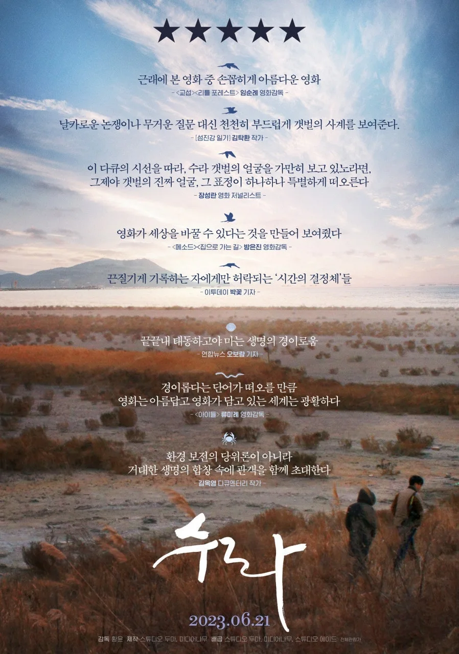 "수라"는 만경강, 동진강 하구의 새만금 갯벌에서 마지막으로 남은 갯벌이다. 세계 최대, 최고의 갯벌로 불리던 새만금 갯벌이 사라지고 수라 갯벌만이 겨우 살아남은 이유는 1991년부터 30년이 넘도록 지금까지 어어지고 있는 새만금 간척 사업 때문이다.