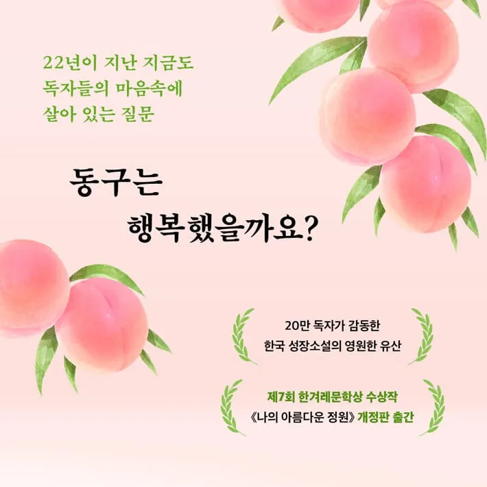 나눌 이야기가 끝도 없이 발견되는 책이다. 북받치는 감정을 꾹꾹 다스리고, 닦을 새도 없이 떨어지는 눈물과 반짝이는 눈망울들을 보며 문학의 위대함을 실감했다. 오늘 모인 분들과 다시 《나의 아름다운 정원》으로 모임을 해도 또 울고 웃으며 한참을 보낼 수 있을 것 같다.