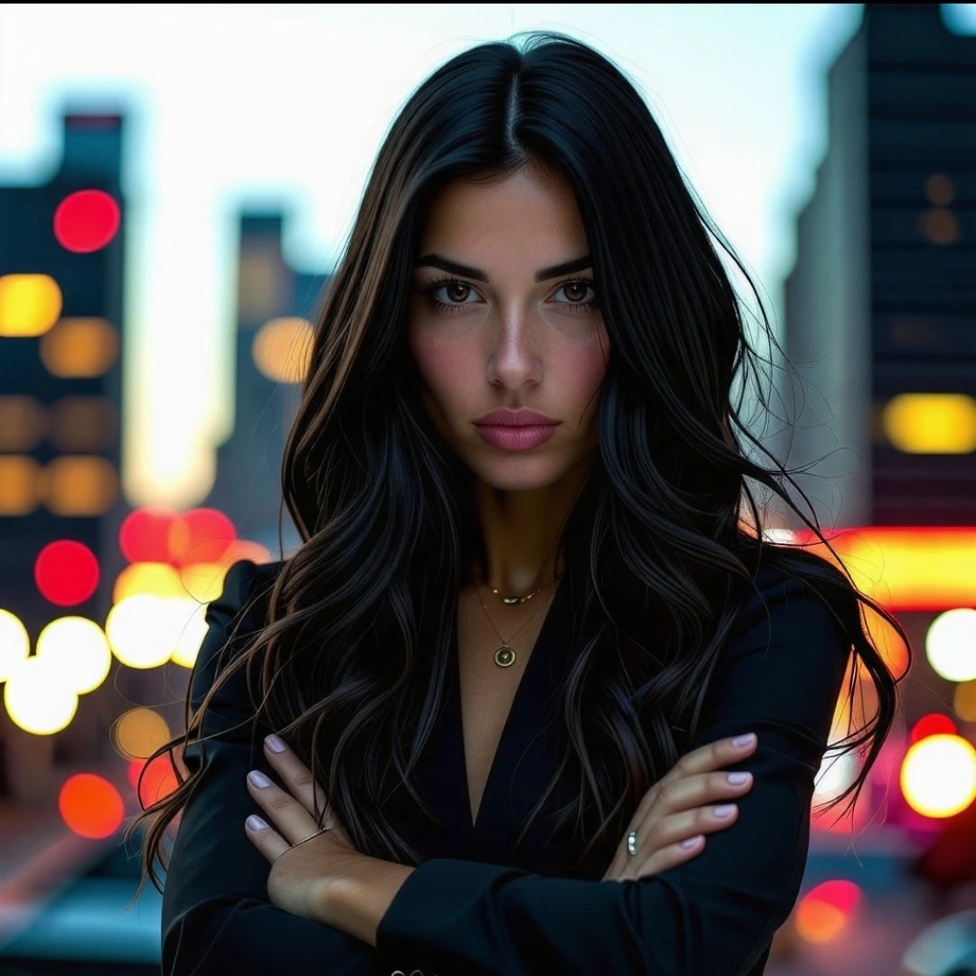 "나는 강연가가 되려고 해. 그런데 발표 공포증이 있어. 그래서 연습을 하려고 해. 나를 노려보는 사람들 앞에서도 내가 긴장하지 않고 발표할 수 있도록, 나를 노려보는 이미지를 그려줘. 팔짱을 끼고 나를 지켜보는 여성의 이미지로."