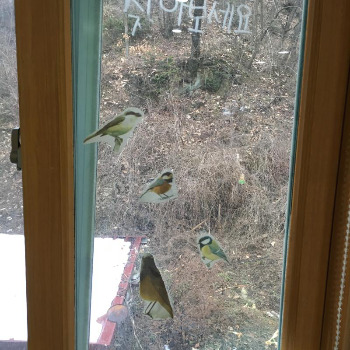 교실 창가로 옮겨온 먹이통 그리고 불청객