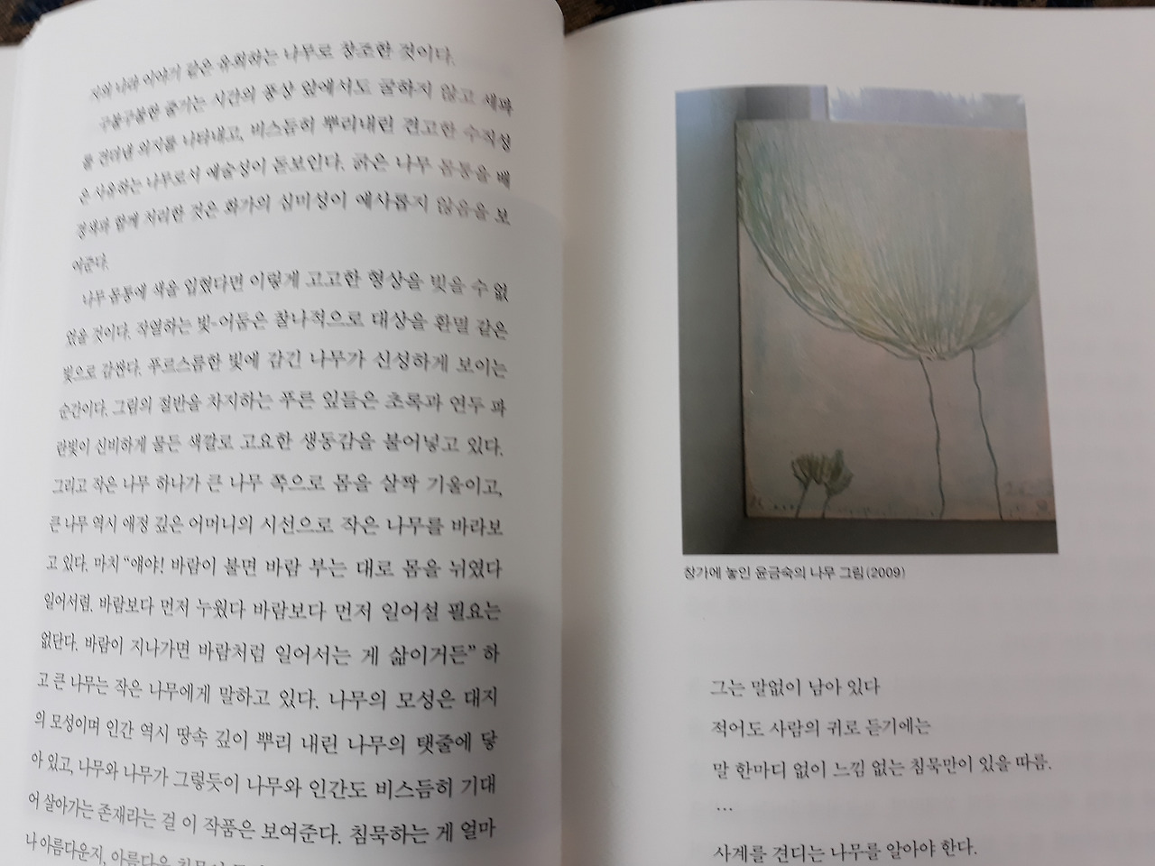 자연의 시간에 순응하는 생명들이 저마다의 색깔로 약동하는 소리를 전해오고 있다. 침묵의 그 소리는 그리움의 사신이다. 긴 겨울의 끝과 이른 봄 사이에 숨은 낯선 그리움은, 시간의 진화에 맞춰 빈집에 아주 여린 진동을 전한다. 바람의 숨결 같기도 하고 그리움의 얼굴 같기도 한 미세한 떨림. 꽃이나 나무는 별빛 싣고 온 공기의 파동에도 반응하고 달빛에도 몸을 연다. 빈집은 시간을 횡단해가는 그리움을 싣고 점멸해 갔다. 눈부시게 빛나는 황금빛 나무를 바라봄이 생의 경이로움이라면, 빈집처럼 사라져 가는 풍경 또한 낯선 경이로움이다./p 119-122