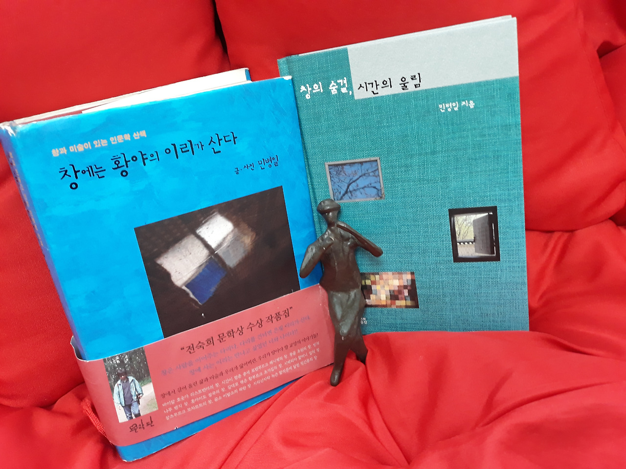 저자 민병일의 창에 대한 작품 『창에는 황야의 이리가 산다』(2017년 전숙희 문학상 수상)는 자기 안의 낯선 ‘이리’를 찾아서 길 위를 걸으며 바이칼 호숫가 리스트뱐카, 중세 로텐부르크, 홋카이도 산골 외딴집, 몽골의 대초원, 와온바다, 옛 곡성역에 이르기까지 수많은 창들을 만난다. 창은 사라지는 것들과 사라지지 않는 것들 사이에서 기억을 소환하는 오브제다. 창의 아름다움은 때로 폐허 속에 존재한다는 확인 한다.