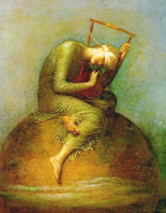 19세기 영국 상징주의 화가 조지 프레데릭 와츠의 작품 <희망> 연작 중 하나다. 와츠의 그림을 자세히 들여다보면 수금의 줄 4개는 모두 끊어지고 오직 한 줄만 간신히 붙어있다. 동그란 구체는 지구를 두 눈을 가린 여인은 위태로운 인류의 모습을, 리라의 끊어진 4줄은 절망을 간신히 남아있는 마지막 한 줄은 희망을 상징한다고 한다.