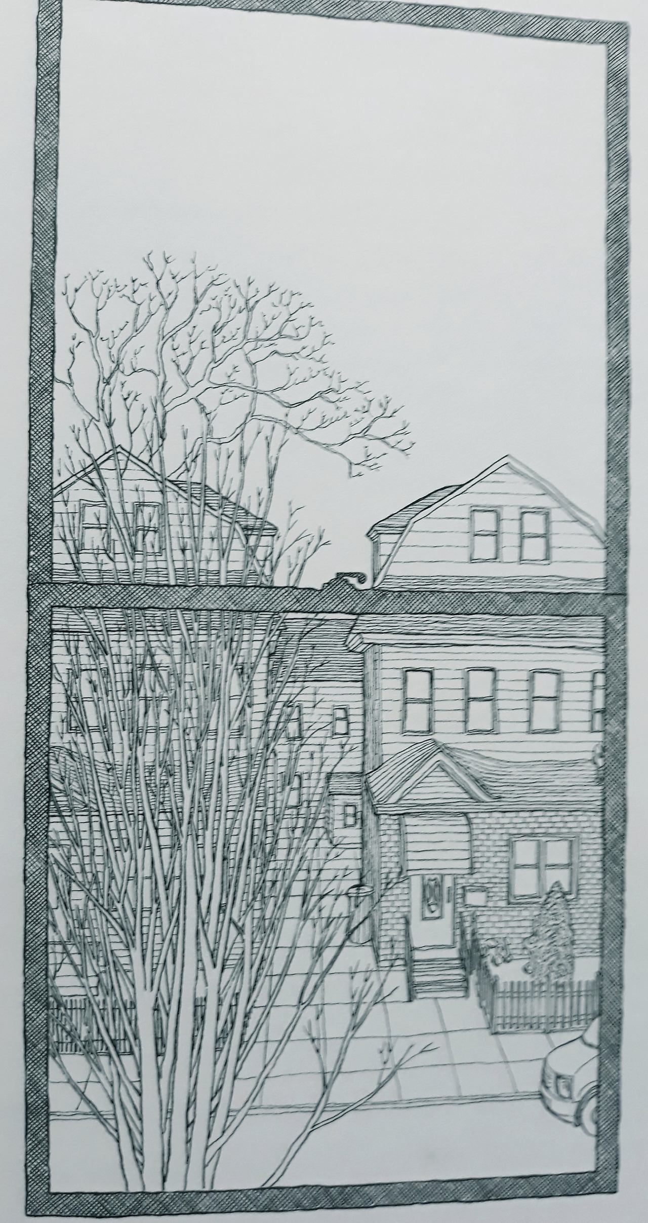 7년간 26일, 육백사십 시간 동안 창밖을 내다보았던 셈이다. 아쉬움이 남아 자신이 늘 바라보았던 창밖의 풍경을 그리기 시작한다.