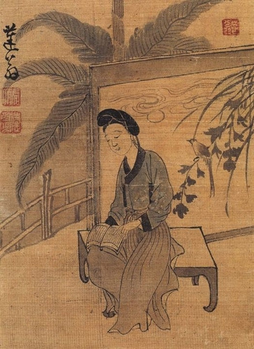 남존여비 사고가 뿌리 깊었던 조선에서의 여성 독서는 '불허'를 넘어 '금단'의 영역이었다. 조선 후기 윤덕희(1685~1766)가 그린 그림은 여자가 책을 읽는 장면을 담은 그림이다.