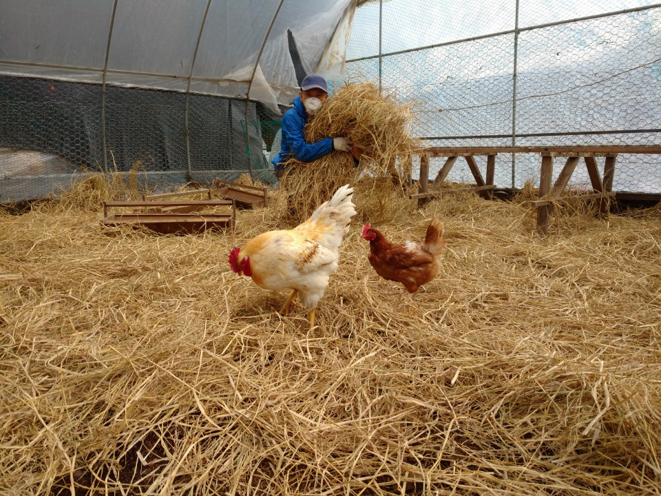삽질 마친 이후 빈 공간에 어린 병아리들의 보금자리가 되어 줄 볏짚을 비롯한 다양한 재료들을 칸마다 들어가 깔아주는 것도 꽤 노동력을 필요로 하는 작업이었다.