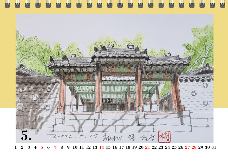 어반 스케쳐로 친구에게 세상에 하나밖에 없는 여행 엽서를 보내고 싶었다. 펜 드로잉에 입문한 것이 그런 연유였는 데 이렇게 펜화 달력을 만들게 되었다. 여행 엽서 대신 달력을 선물하는 것도 괜찮아 보인다. 친구를 향한 나의 각별한 정성을 이렇게라도 전하고 싶었다. 친구들아, 예상치 못한 선물을 받는 기쁨을 그저 누려만 주렴!